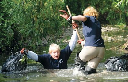 بوریس جانسوی شهردار لندن در برنامه پاکسازی رودخانه لویشام لندن با نام "تمیز و سبز" مشارکت کرد.