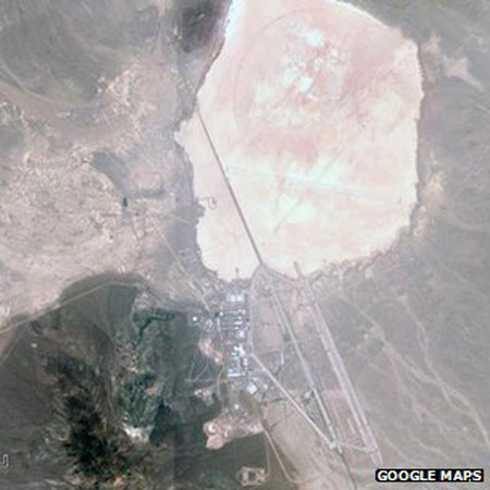 تصویر هوایی از مرکز "اریا 51"بر اساس اطلاعات جدیدی که سازمان سیا منتشر کرده آزمایش برخی هواپیماهای سری آمریکا از جمله هواپیماهای جاسوسی مشهور" U-2" ، هواپیمای SR-71 ، F-117 و..در این مرکز انجام شده است.