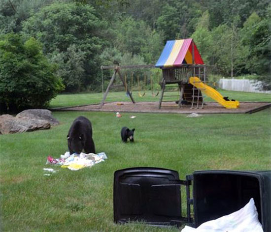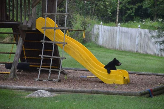 در چند ساعتی که ماریان دور از خانه بود، توله خرس ها سرسره بازی را روی تاب و سرسره دختران او یاد گرفته و گرم بازی بودند. مادر توله خرس ها هم چند متر آن طرف تر زباله ها را برای پیدا کردن غذا کند و کاو می کرد.
