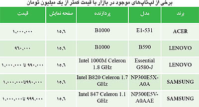 "لپ تاپ" هاي ارزان قيمت بازار (جدول)