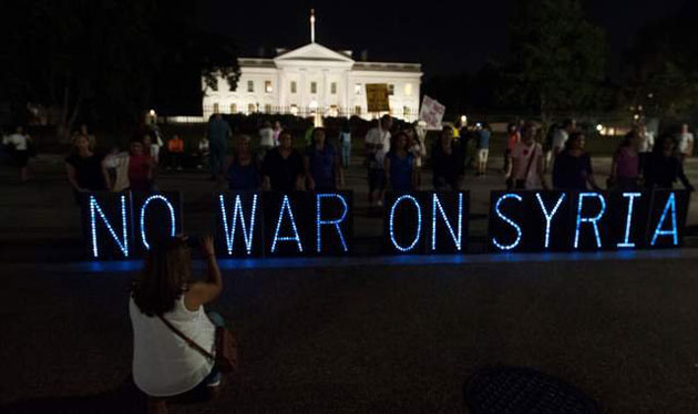 عصر ایران - اجتماع شبانه مخالفان جنگ با سوریه در مقابل کاخ سفید