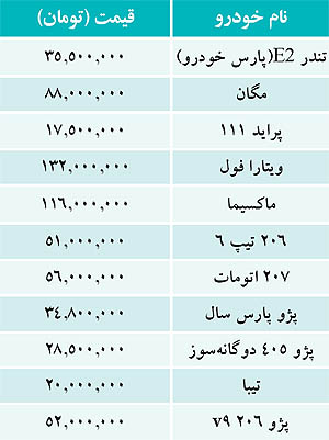قيمت خودرو‌هاي داخلي در بازار (جدول)