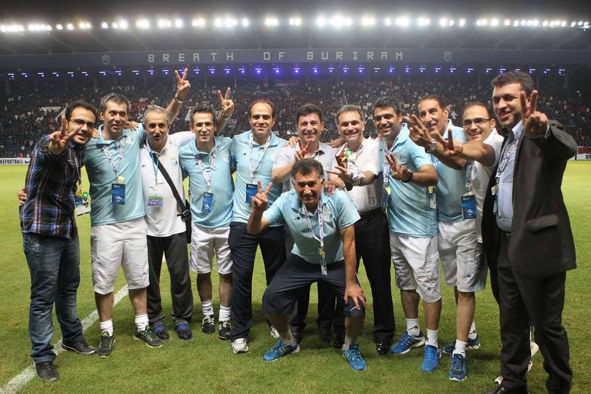 خوشحالی استقلالی‌ها پس از صعود به نیمه نهایی و شوخی امیر قلعه‌نویی با یکی از تدارکات تیم