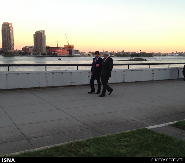 پس از این دیدار ظریف و داوود اوغلو در دیداری خصوصی در کنار رودخانه هادسن که جنب سازمان ملل قرار دارد ساعتی با یکدیگر قدم زدند و به رایزنی پرداختند.