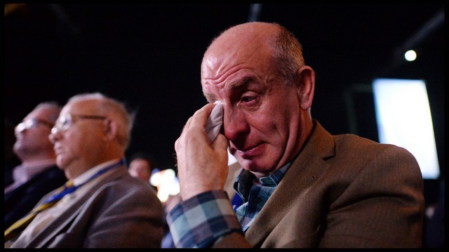 نمایش یک فیلم از مارگارت تاچر نخست وزیر فقید بریتانیا در کنفرانس سالانه حزب محافظه کار بریتانیا در منچستر و گریه یکی از اعضای حزب محافظه کار که متاثر شده است.