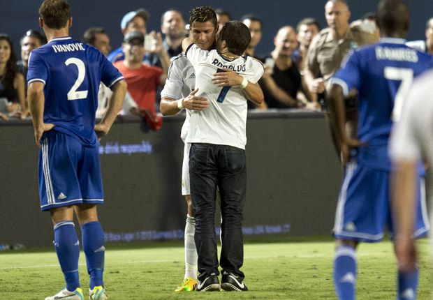 در روز 7 آگوست سال 2013 میلادی و در جریان بازی دوستانه دوتیم رئال مادرید و چلسی در آمریکا بود که پسر جوانی برای درآغوش کشیدن کریستیانو رونالدو به داخل زمین چمن پرید. رونالدو نیز او را در آغوش کشید و بعد این پسر جوان توسط نیروهای امنیتی به بیرون ورزشگاه منتقل شد.