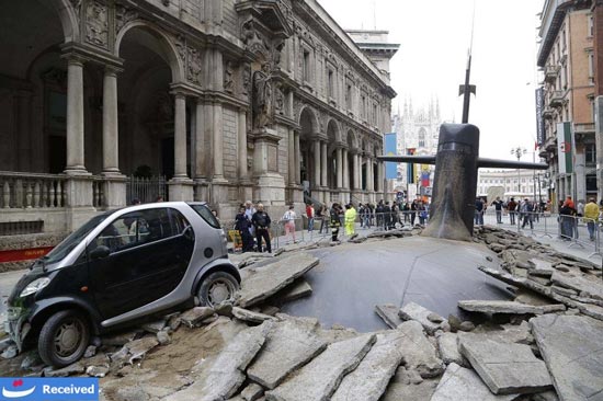 تابناک: مردم میلان،یک روز صبح، وقتی از خانه هایشان بیرون آمدند به ناگاه با یک زیر دریایی عظیم که از کف خیابان یکی از مکان های پر رفت و آمد میلان سر در آورده بود مواجه شدند.