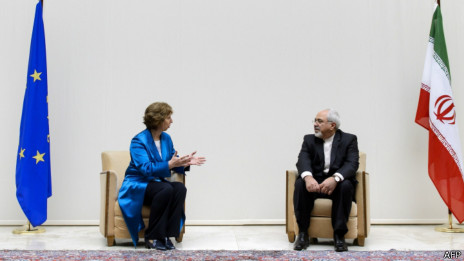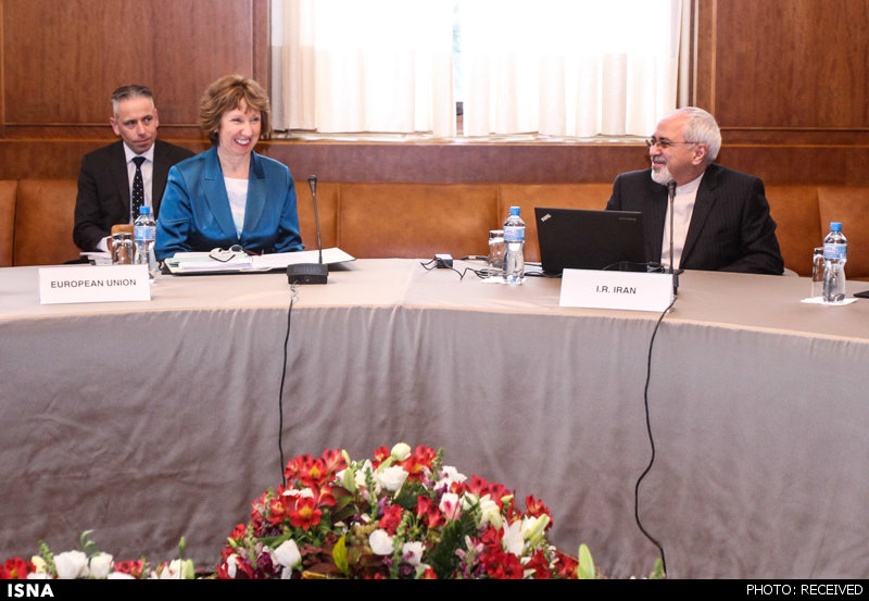 ظریف و اشتون پیش از شروع اجلاس عکسی به یادگار انداختند که البته به دلیل عارضه کمردرد ظریف دو طرف نشسته عکس گرفتند.