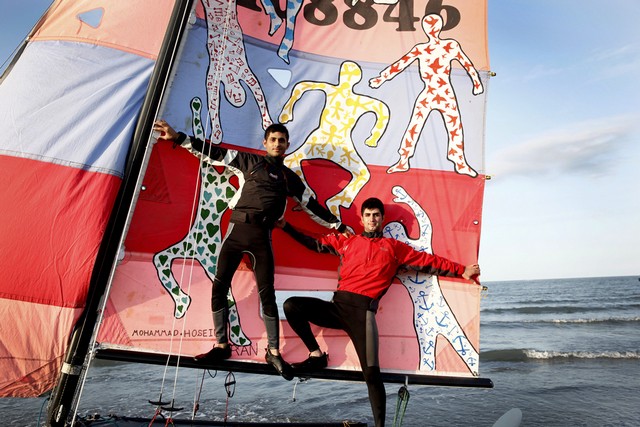 این بادبان متعلق به دو قهرمان بین المللی جوان گیلانی با نام های «مجید سیفی» و «حسین عیسی پور» است. آنها پس از شنیدن داستان کلاس پرنده و نحوه ی آموزش این دوره، بادبان تمرینی شان را در اختیار آنها گذاشتند. مجتبی کلارستاقی مدیر اجرائی پروژه می گوید: «این همان بادبان ایست که آنها با آن به اولین مقام قهرمانی شان دست یافته بودند. این ماجرا را دوست داشتیم چون کانسپت مرکزی تدریس مان را تقویت می کرد.»