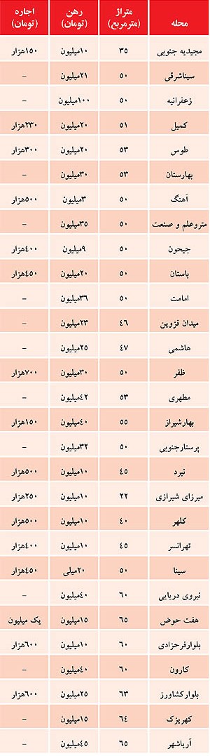 نرخ رهن و اجاره خانه هاي "پايتخت" با متراژهاي کوچک (جدول)