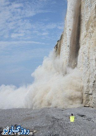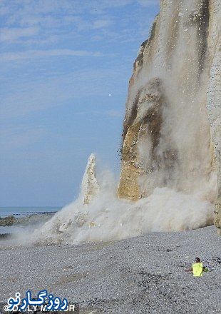 بنا بر این گزارش، صخره هایی از این کوه تا نزدیکی این خانم می ریزد و کمی هم برای تذکر به او گچ و سنگ می زند تا یادش باشد و یاد بقیه هم باشد که این تابلو را کمی جدی بگیریم: خطر ریزش کوه!