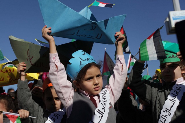 درست کردن کشتی های کاغذی از سوی کودکان غزه ای در تظاهراتی برای محکوم کردن اسراییل به خاطر محاصره دریایی غزه