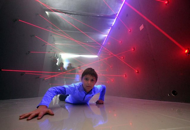 خزیدن یک نوجوان روسی در یک موزه آزمایشگاهی علوم در شهر روستو زیر نور لیزر
