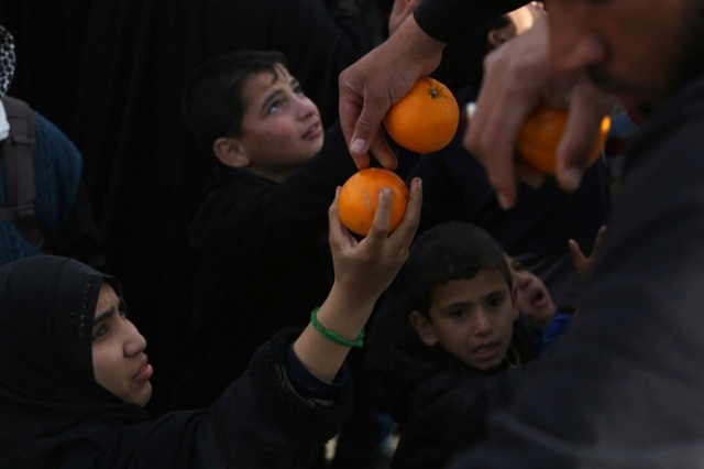توزیع پرتقال در میان زائران اربعین حسینی در عراق