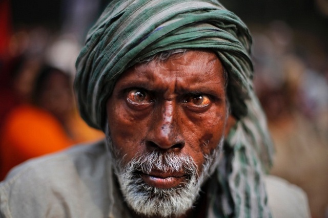 یک معترض هندی در مقابل پارلمان در حال گوش دادن به سخنان رییس مجلس