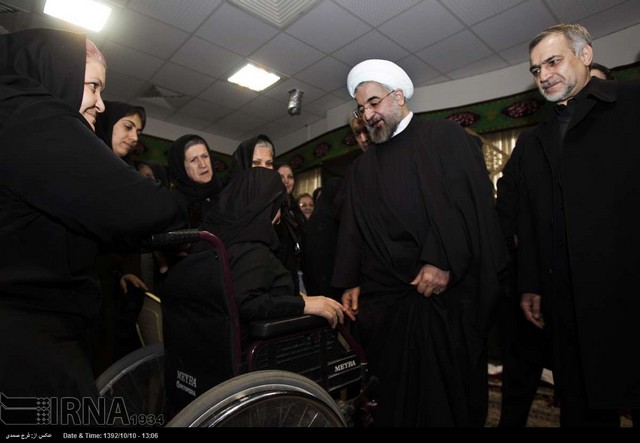حجت الاسلام حسن روحانی رییس جمهوری، صبح سه شنبه همزمان با بیست و هشتم صفر، سالروز رحلت رسول اکرم (ص) و شهادت امام حسن مجتبی (ع) در مجتمع خدمات توانبخشی کودکان معلول نارمک حضور یافت و از بخش های مختلف این مجتمع دیدن کرد.