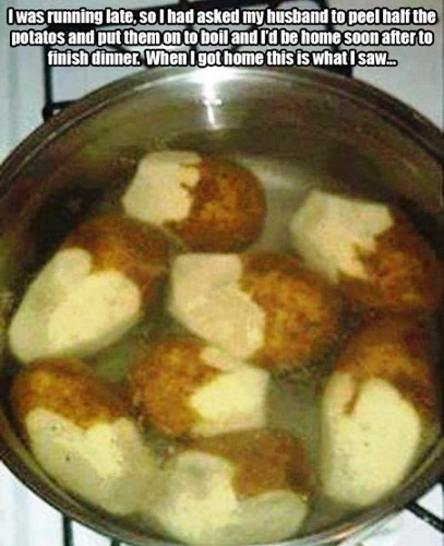 زنی هنگام بیرون رفتن برای شوهرش یادداشت زیر را نوشت: عزیزم نصف سیب زمینی ها رو پوست بکن و بیانداز در آب جوش تا من برسم خونه... حالا ببینید شوهرش چیکار کرده؟!؟