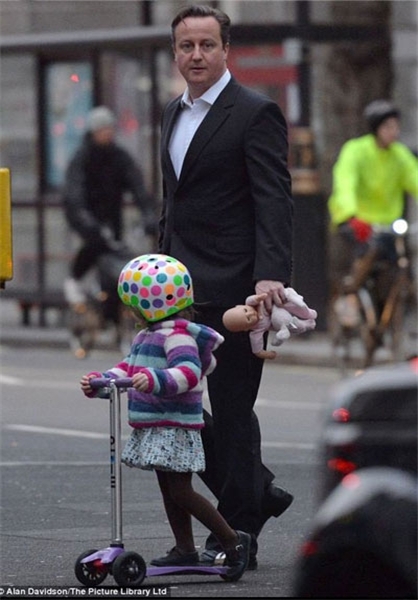دیوید کامرون نخستوزیر انگلیس و دخترش در خیابانهای لندن