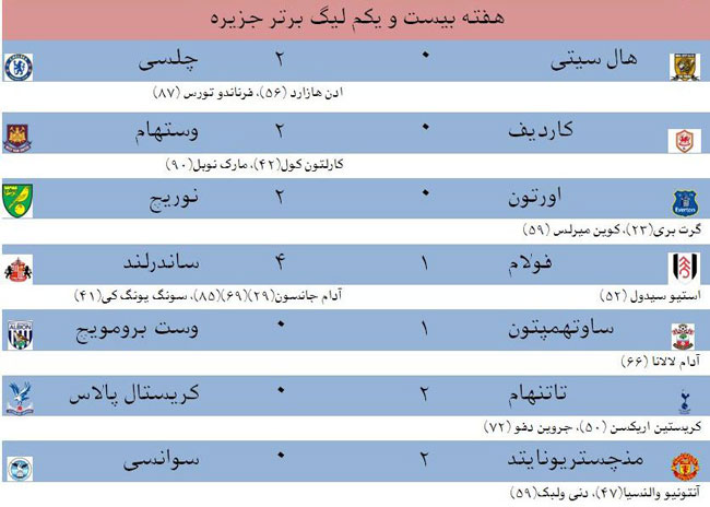 نتایج دیدارهای شب گذشته را در جدول زیر میتوانید ببینید:
