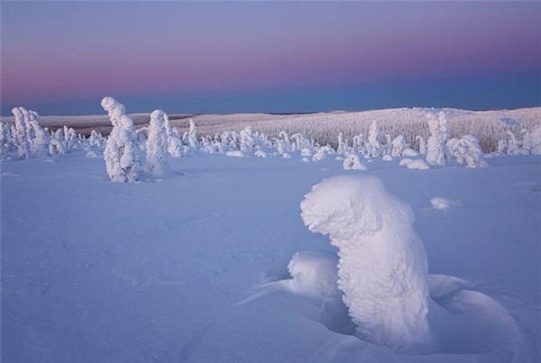 سرمای قطبی در مناطق فنلاند موجب دگرگونی طبیعت و زیباتر شدن آن شده است.