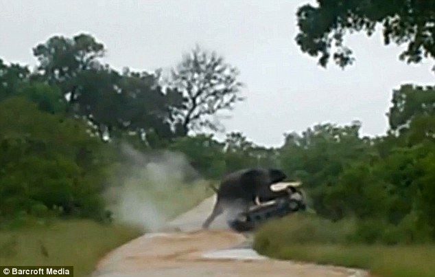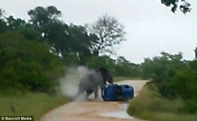 جام نیوز - سایت دیلی میل نوشت: این زوج جوان انگلیسی که برای تفریح به صحراهای آفریقا سفر کرده بودند مورد حمله این فیل قرار گرفتند و خودروی آنها 3 بار توسط این فیل چرخانده شد.