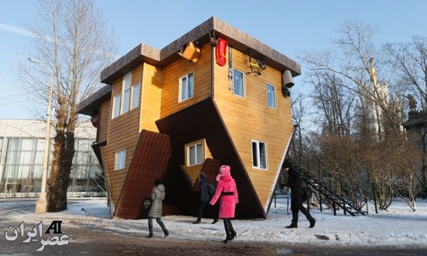 یک خانه وارونه در نمایشگاهی در مسکو