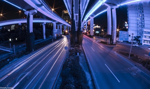 فلورین دِلالی عکاس ۲۷ ساله فرانسوی در سفر چهار سال پیشش به این بندر بزرگ چین، با صرف وقت زیاد و استفاده از تکنیک نوردهی مدت دار، توانسته با لنز فیش آی تصویرهای زیبایی از سازه‌های شهری و بناهای مرتفع شانگهای ثبت کرده و آنرا به زیبایی به تصویر بکشد.