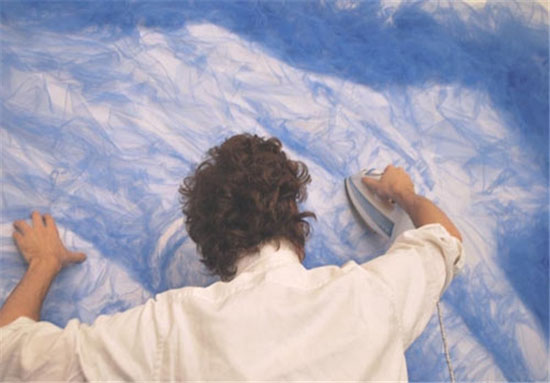 نقاشی با اتو بر روی پارچه ابریشمی (+عکس)
