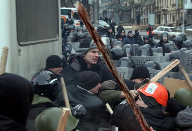 درگیری پلیس و معترضین در خیابان های پایتخت اوکراین (عکس)