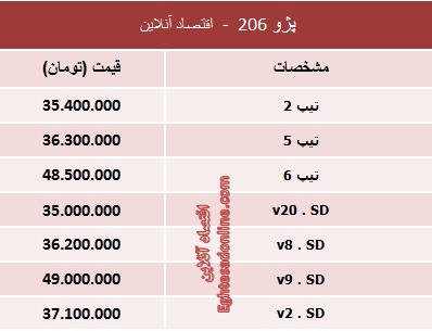 آخرین قیمت انواع مدل‌های پژو ‌206‏ (جدول)