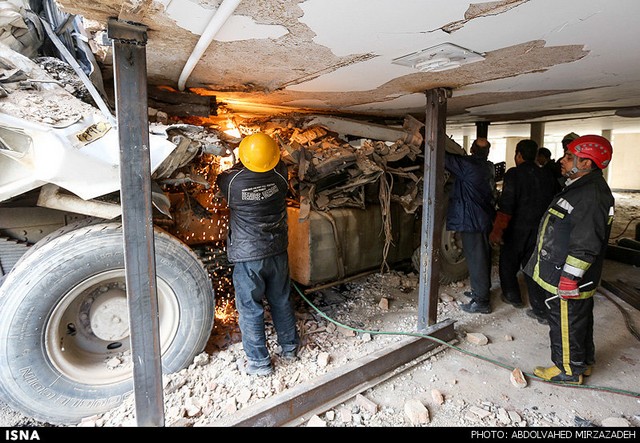 ورود کمپرسی به ساختمان مسکونی در امیرآباد تهران (عکس)