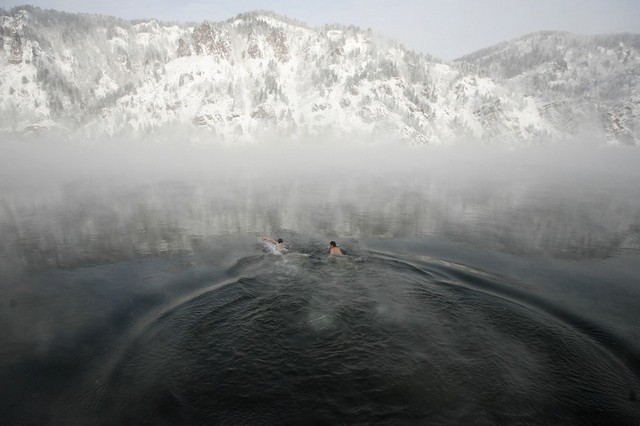 مسابقه شنای زمستانه در دریاچه ای در سیبری روسیه