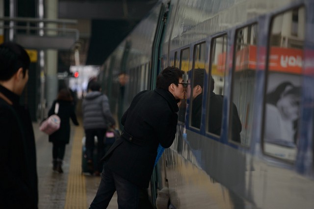 خداحافظی از پشت شیشه قطار در ایستگاه قطار شهر سئول