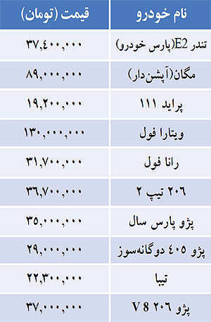 قيمت خودرو‌هاي داخلي در بازار (جدول)