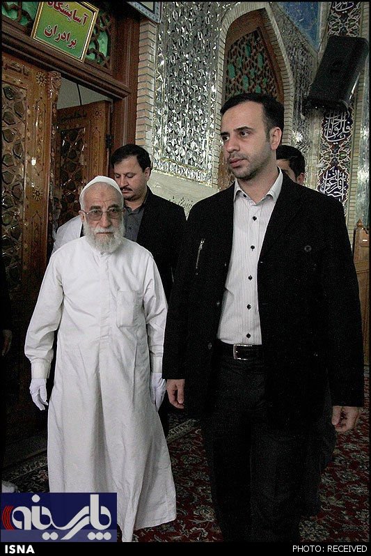 تصویر زیر، آیت‌الله جنتی را در یکی از اماکن متبرکه نشان می‌دهد.