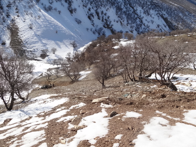 خودرو کاملا مچاله شده و از بالا که نگاه میکنی مشخص نیست که چه خودرویی به ته دره افتاده است تنها میتوان از لاستیکهای آن تشخیص داد که پیکان است.