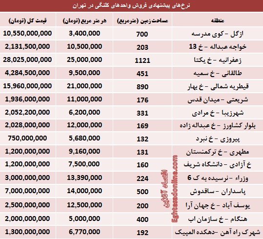 مظنه املاک کلنگی تهران چند؟ (جدول)