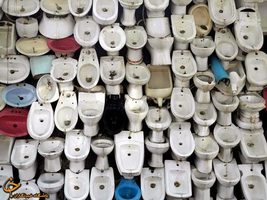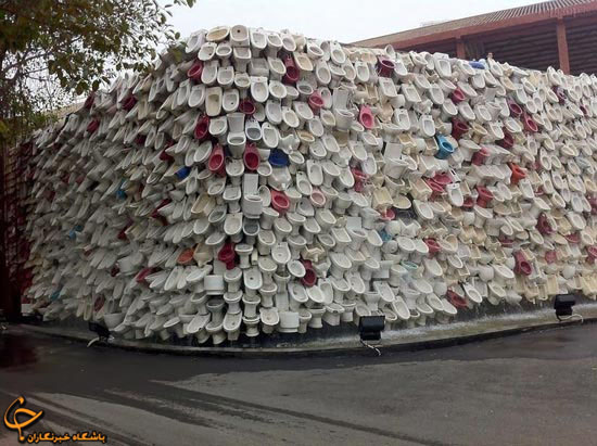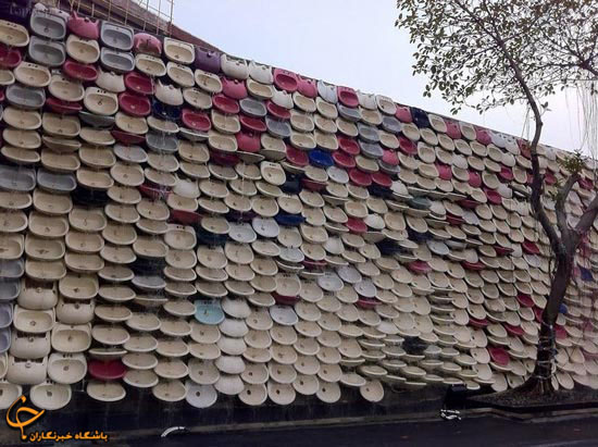 در یکی از شهرهای چین، هنر عمومی عجیب و غریبی در خیابان ساخته شده است. یک دیوار به طول 100 متر با 10 هزار کاسه توالت تزئین شده و آبشاری از آنها پایین می آید.