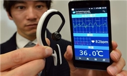متخصصان ژاپنی در حال آزمایش نمونه اولیه یک کامپیوتر کوچک هستند که مانند گوشواره بر روی گوش نصب شده و میتواند فرمانها را از طریق حرکات مختلف صورت دریافت کند.
