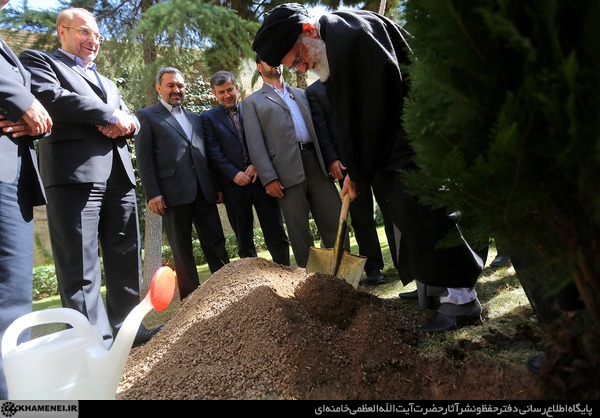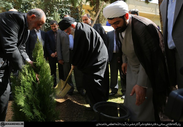در هفته منابع طبیعی و در آستانه روز درختکاری، آیت الله خامنه ای رهبر معظم انقلاب اسلامی ظهر چهارشنبه یک اصله نهال غرس کردند.