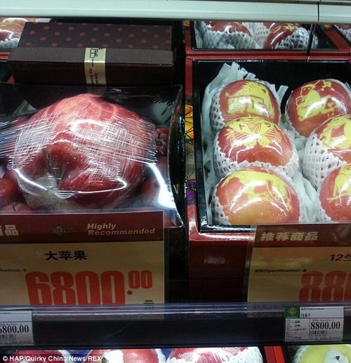 سیب 1.2 کیلوگرمی به قیمت 664 پوند معادل 3 میلیون و 320 هزار تومان قیمت این سیب 6800 یوان معادل 664 پوند تعیین شده (3 میلیون و 320 هزار تومان با پوند 5 هزار تومانی) و حدود دو ماهی است که در سوپر مارکت قرار داده شده اما کسی هنوز آن را نخریده است.