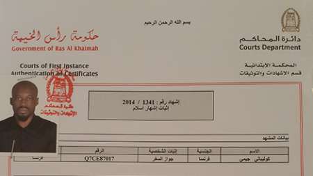 به گزارش شبکه ورزشی ابوظبی، این بوکسور فرانسوی باحضور در دادگاه راس الخمیه که با حضور شاهدانی از دو کشور یمن و موریتانی برگزار شد، شهادتین را قراعت کرد.