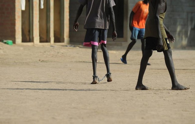 زندانیان در حال بازی فوتبال در حیاط یکی از زندان های شهر جوبا پایتخت سودان جنوبی