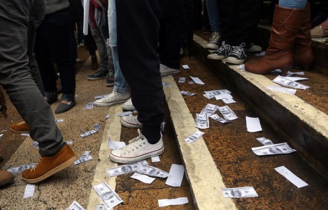تجمع اعتراضی دانشجویان دانشگاه آمریکایی بیروت علیه افزایش شهریه ها