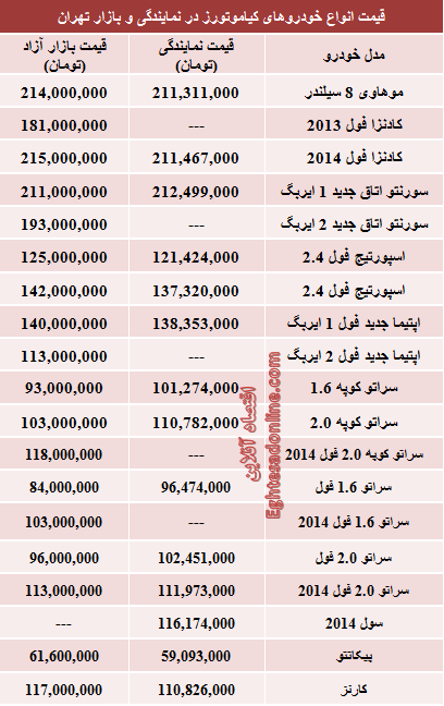 جدیدترین قیمت خودروهای کیاموتورز در نمایندگی و بازار (جدول)
