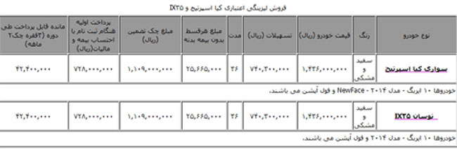فروش اقساطی "کیا اسپرتیج و IX35" (+جدول)