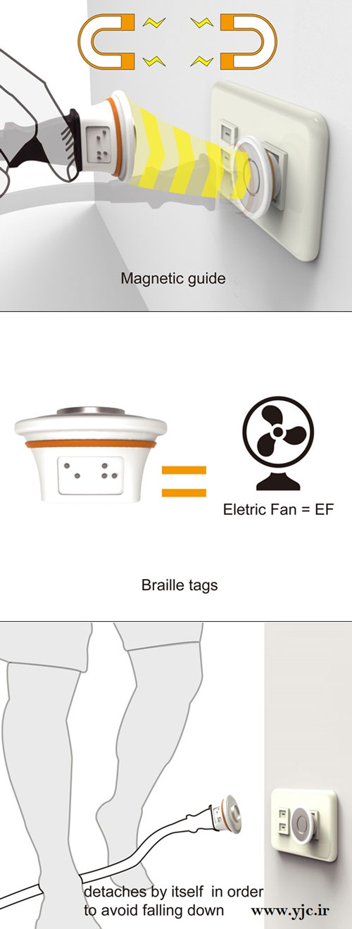 "چینگ تزای" به تازگی وسیله ای برای راحتی نابینایان هنگام کار  با وسایل الکتریکی ابداع کرده است که ویژگی های منحصر به فردی دارد. این طراح پریز برق مغناطیسی که در اصل یک آداپتور برای وسایل برقی است به وجود آورده است.