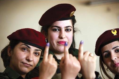 تصاویر زیر از مشارکت زنان نظامی نیروهای پیشمرگه در کردستان عراق در انتخابات پارلمان منتشر شده است.