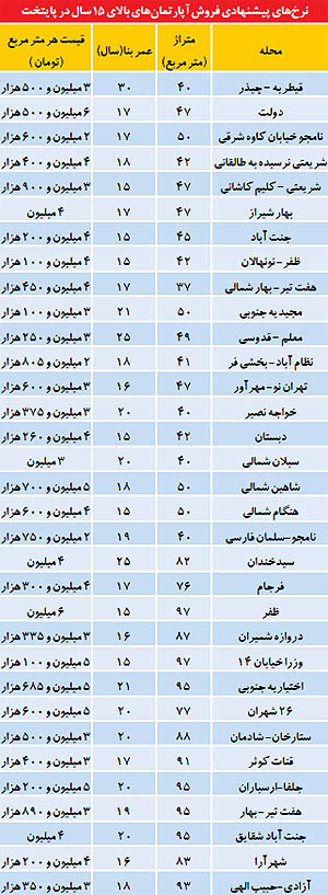 ليست تازه از قيمت املاك سالخورده (+جدول)