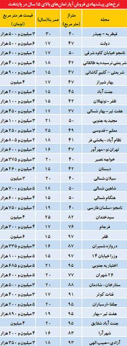 قیمت آپارتمان های بالای 15 سال ساخت در تهران (+جدول)